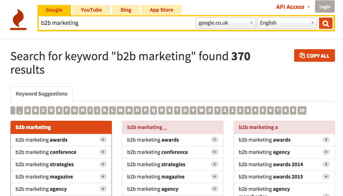 2015 I noticed a new 'Tool on the Block' for keyword analysis - check out KeywordTool.io. It's like UberSuggest, but with better formatting - I